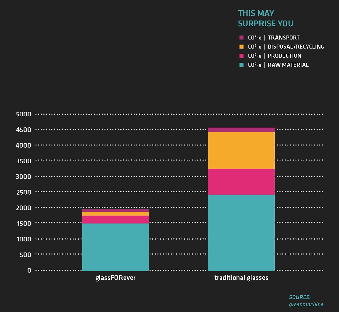 All our materials are 100% reusable and the use of CO2 is considerably lower than for the production of traditional products. So an investment in products from glassFORever is an environmentally responsible decision in the handling of our global climate change challenges.