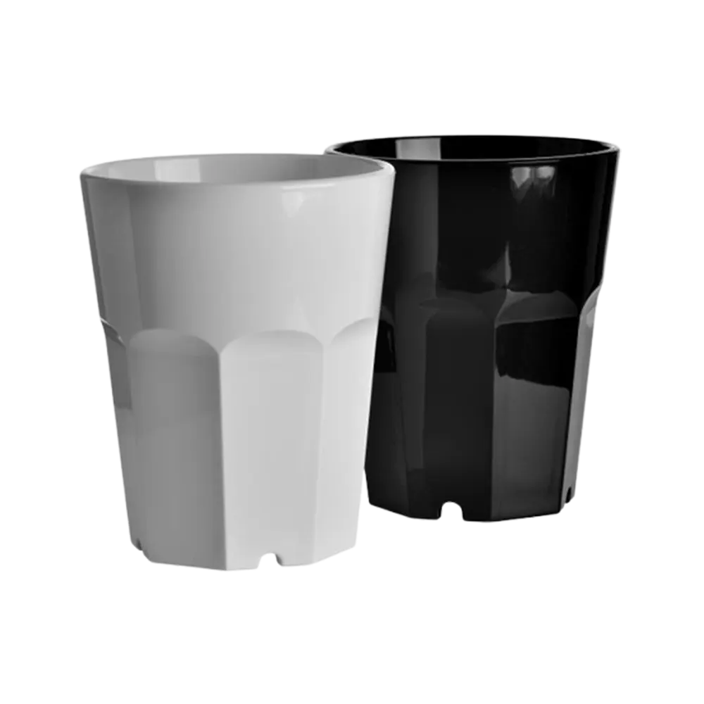 Reusable, recyclable and environmentally friendly plastic drinking glasses.